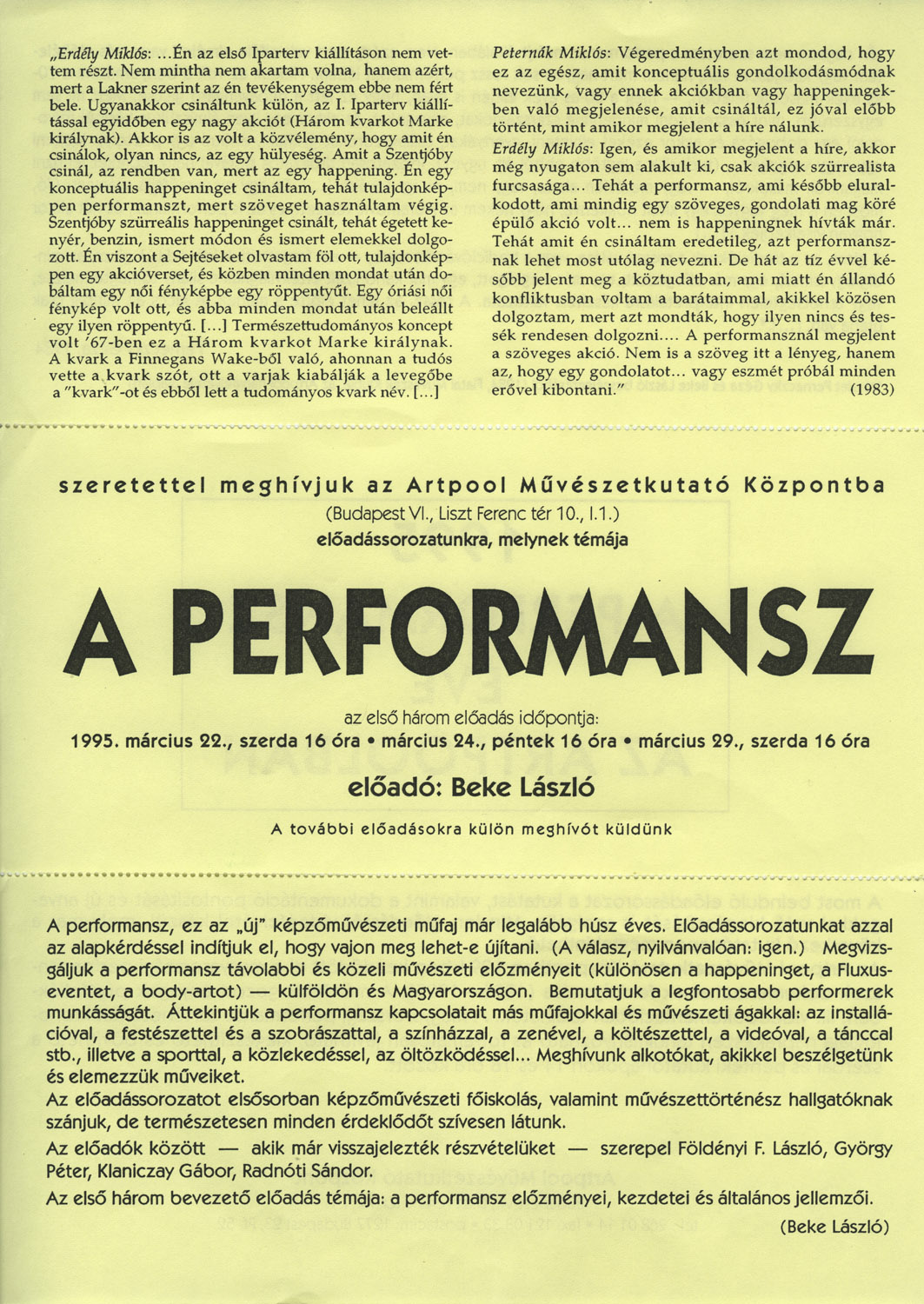 A performansz éve az Artpoolban, 1995.